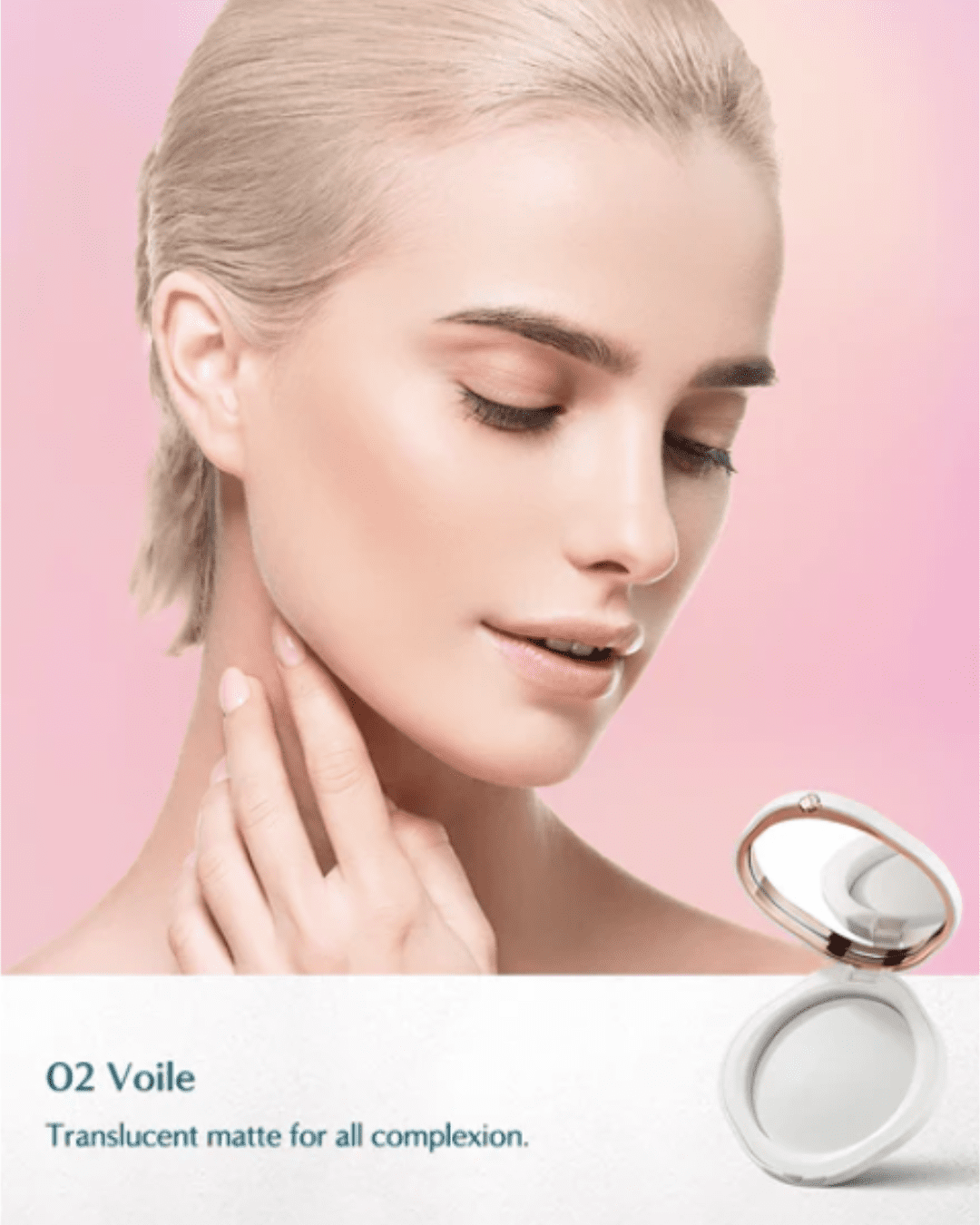 This compact comes in a sandy pink hue. The powder is silky, soft, and breathable, offering luminous, weightless coverage.