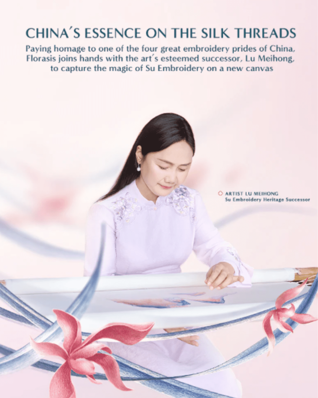 The Ode to Embroidery collection highlights Florasis’s dedication to cultural heritage by partnering with Lu Meihong, a third‑generation Su embroidery artist. Su embroidery is one of China’s most esteemed traditional textile arts, known for its refined silk stitching, subtle layering of color, and lifelike representation of natural and cultural motifs. Florasis chose to bring this craft to life on makeup packaging to honor a heritage that spans centuries and to translate real artistic tradition into a modern beauty context.